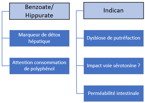 | Benzoate | Hippurate | Autres métabolites urinaires | Interprétation |