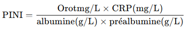 Indice PINI = Pronostic Inflammatory and Nutritionnal Index