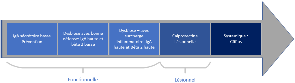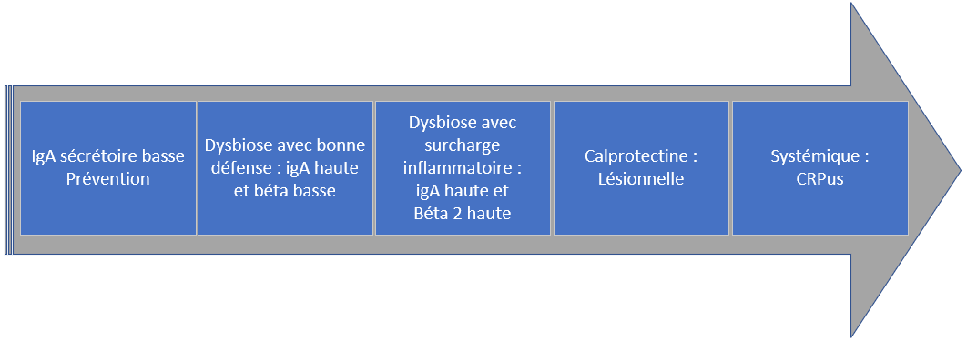 | Bêta 2 défensine | Potentiellement colon et grêle | Haut : signe infection à bactérie gram- ou mycose |