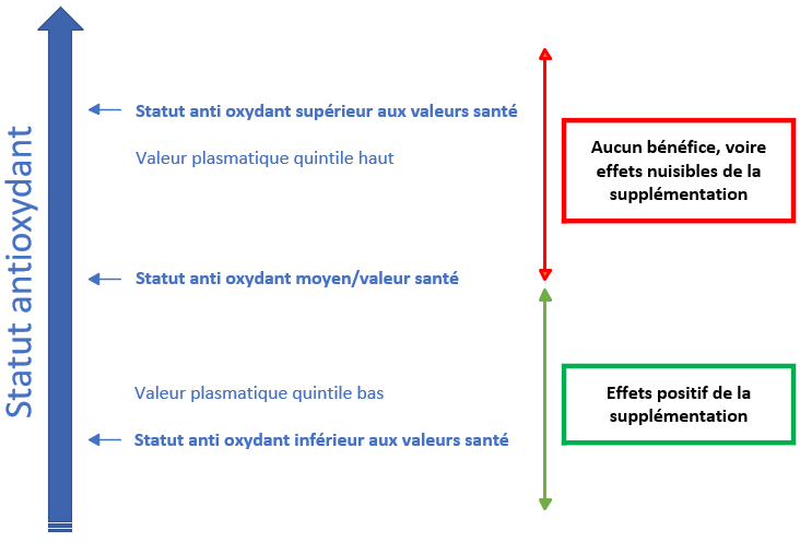 La complémentation en antioxydants ou oligoéléments ne doit pas dépasser les valeurs optimales santé.