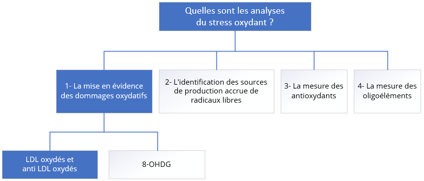 - Anticorps anti LDL oxydées : signes de stress oxydant sur le plus long terme – exposition sur le long terme d’un individu à un stress oxydant