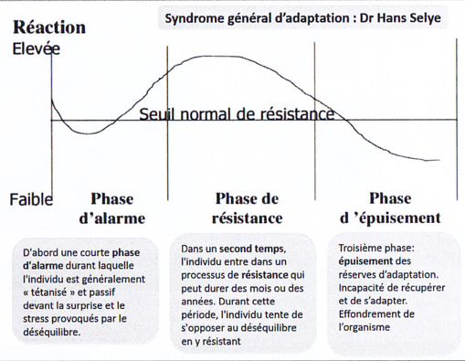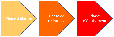 Le modèle de Selye postule que tout être humain qui rencontre une situation source de stress tend à s’y adapter au moyen de trois phases :