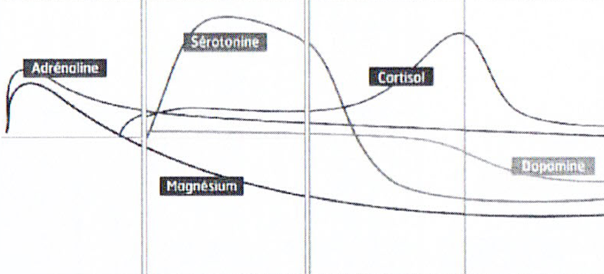 | Stress aigue – cours | Adaptation | Dérèglement horloge biologique | Catabolisme > anabolisme Vieillissemen | Début épuisement surrénalien | Effondrement surrénalien | |