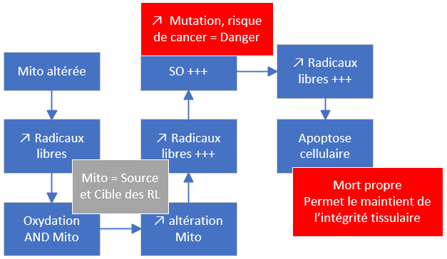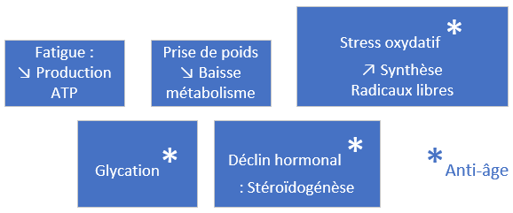 - Mitochondrie dysfonctionnelle = augmentation de toutes les causes du vieillissement :