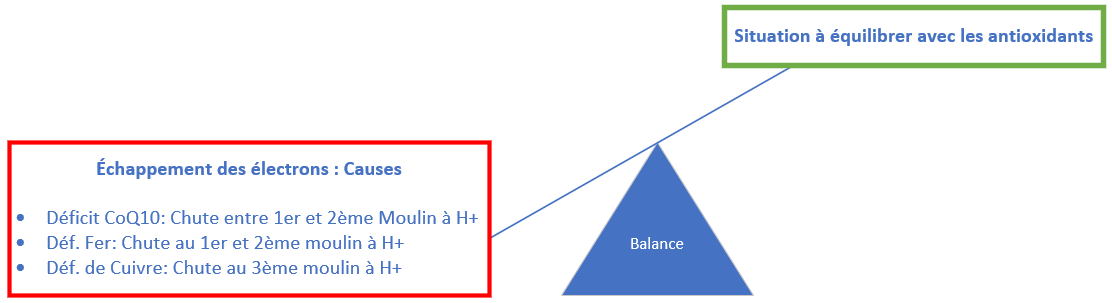 - ↘ Réduction de l’O2 en O2- (anion super oxyde = radical libre)