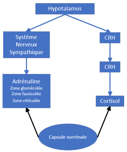 - Synthèse principalement surrénalienne sous l’effet du SNA sympathique