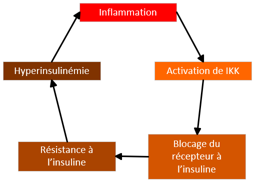 - L’inflammation peut induire de l’hyperinsulinisme et une résistance à l’insuline