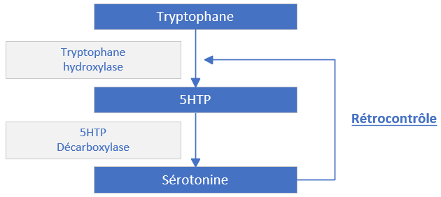 - En cas d’excès de sérotonine: Rétrocontrôle par inhibition de la tryptophane hydroxylase