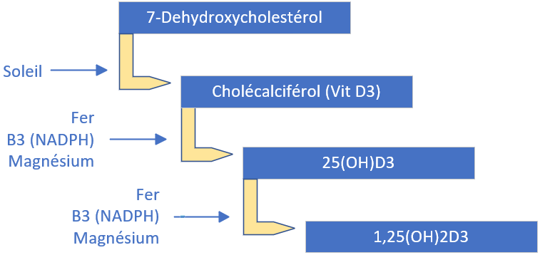 - Synthèse locale de 1,25(OH)2D3 par les cellules du système immunitaire (expriment le VDR et les enzymes nécessaires à son métabolisme)