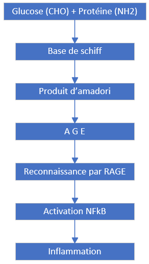 Glycation induite par le glucose en excès et le méthylglyoxal (déchet de la glycolyse) entraîne de l’inflammation.