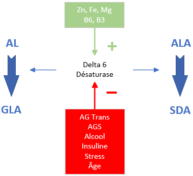 - Fonctionnalité de la Delta 6 désaturase dépend de :